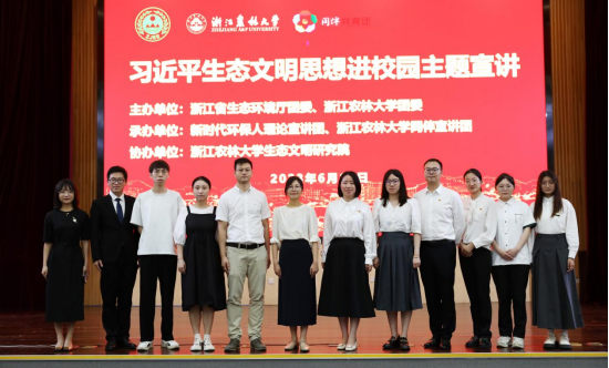 浙江省生态环境系统新时代环保人理论宣讲团成员、浙江省生态环境科学设计研究院科技实验中心技术负责人吴电、浙江省海洋生态环境监测中心谢杨临碣,beat365官方网站同伴宣讲团成员,环资院、碳中和学院测绘211班的张嫣、农学院农学211班的翁晨玮分别进行宣讲。
