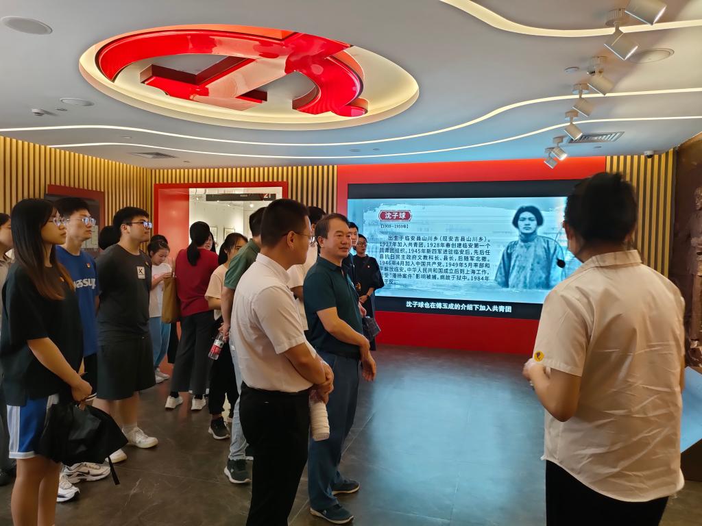 随后,师生党员代表参观了临安区党建展览馆,观看了《天目风云》微电影,进一步了解了党史和临安发展史。