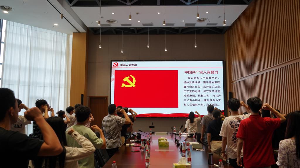 最后,全体与会党员重温了入党誓词,林学研究生第一党支部代表向三位老党员赠送了beat365官方网站竹子明信片。