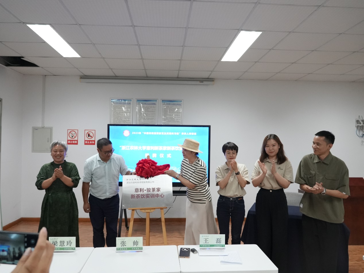 9月9日,由茶学院和深圳市意利投资控股有限公司联合建立的“意利·骏荼家新茶饮实训中心”揭牌仪式圆满举行,该实训中心由意利投控捐赠。茶学院院长王磊、意利投资控股有限公司总经理孙琳、“中国传统制茶技艺及其相关习俗”传承人研修班学员、意利骏荼家相关部门负责人、茶学院部分师生代表出席了本次揭牌仪式。