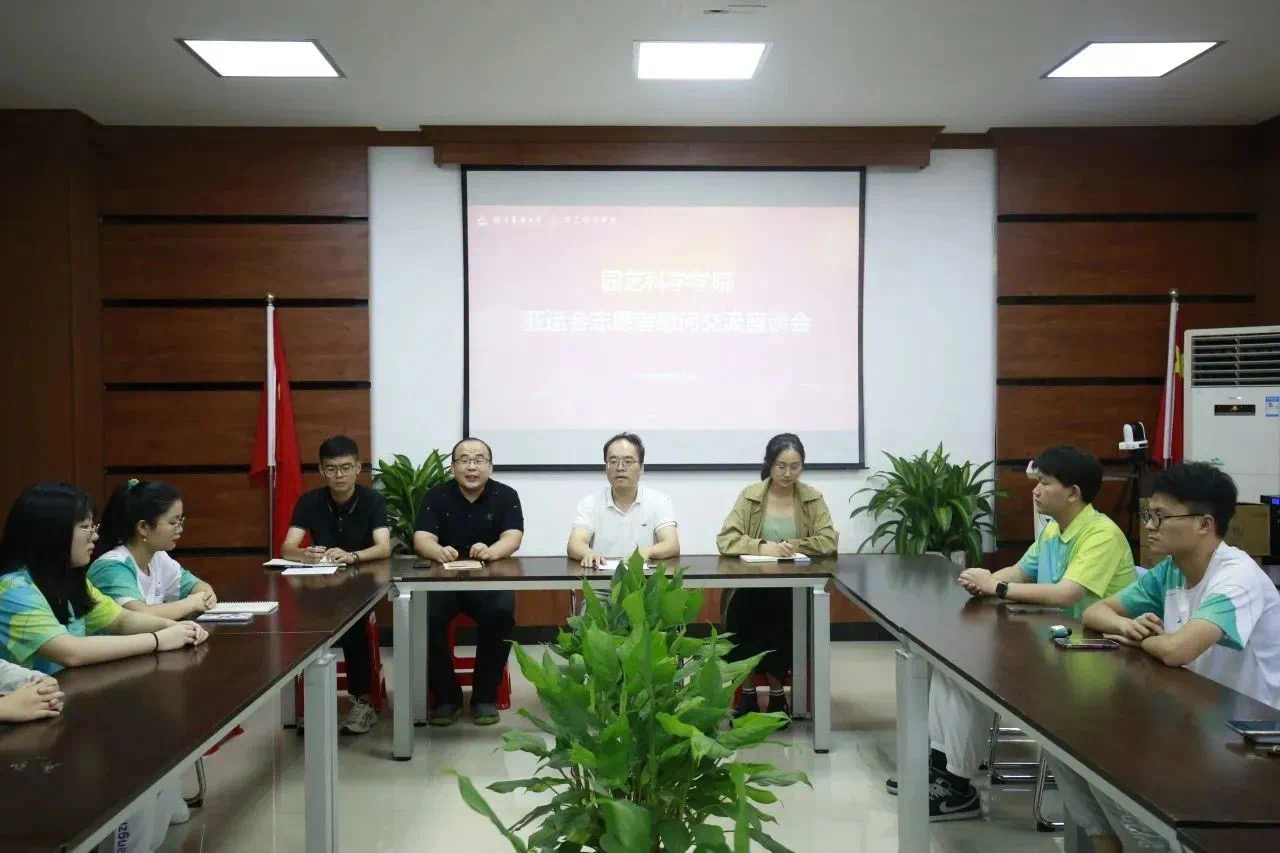 9月15日,园艺学院举行杭州亚运会志愿者慰问交流座谈会。学院党委书记何振波、辅导员、师生志愿者30余人参加活动。