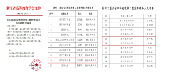 近日,浙江省高等教育学会印发了《关于公布浙江省本科院校第二批榜样教务处长及优秀教务员的通知》(浙高教学会〔2024〕1号 ),beat365官网代向阳老师被评为第二批榜样教务处长,徐娟老师和李玲霞老师被评为优秀教务人员。