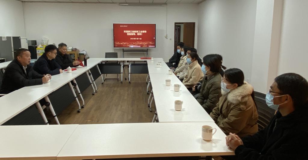 1月11日,浙江省教育工会副主席潘磊代表省总工会、省教育工会来校慰问困难教职工,送上工会“娘家人”的温暖和新年祝福。省教育工会权益保障工作负责人包显陪同座谈。