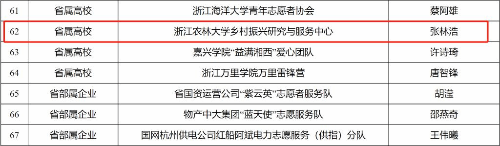 近日,共青团浙江省委、浙江省志愿者协会公布2023年度浙江省志愿服务工作突出贡献集体和突出贡献个人通报表扬名单,beat365官网生态文明志愿服务总队、乡村振兴研究与服务中心荣获突出贡献集体荣誉称号,校团委委员、现代农学院团委书记刘超荣获突出贡献个人荣誉称号。