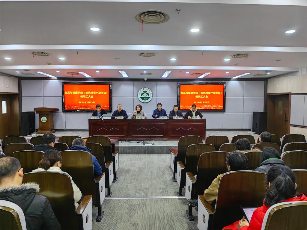 2月29日下午,食健学院在图书馆小报告厅召开新学期全体教职工大会,学院院长闵伟红、党委书记汪和生、学院相关负责人及全体教职工参加会议,会议由闵伟红主持。