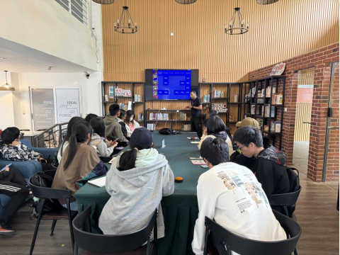 4月11日,集贤学院在学1一楼举办“Grammar Gameshow”英语角活动,外教Gene与同学们展开了一场有趣的讨论。