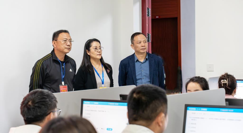 浙江省技能人才评价管理服务中心陈慧红科长专程来校督导,学院院长马小辉、书记苏小菱等领导陪同巡考。