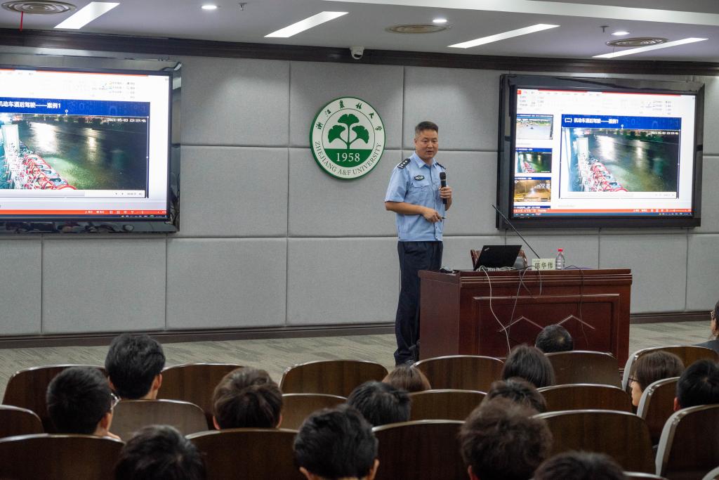 4月25日下午,数计学院在东湖校区图书馆第二报告厅举办交通安全教育讲座。本次讲座通过学校保卫处邀请到杭州市公安局临安区分局交警大队业务科科长陈华伟警官主讲。学院学生工作相关负责人、辅导员、本研学生代表参加讲座。本次活动由物联网工程232班团支部、计算机科学与技术234班团支部共同承办。