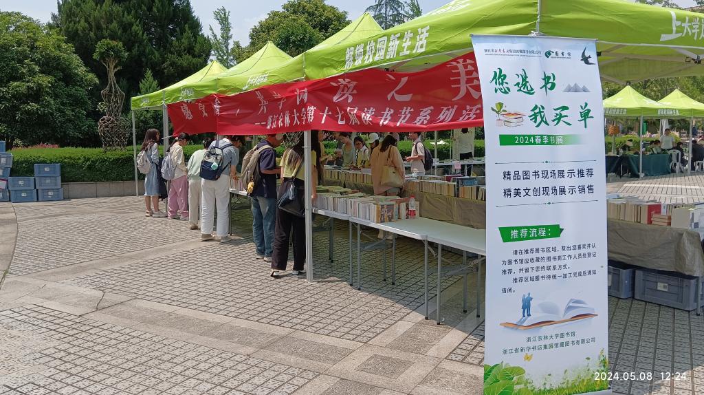 为深入推进全民阅读,营造书香农林文化氛围,提升图书馆的服务质量,本次活动图书馆与省新华书店、杭州海鲨书店、湖北三新文化传媒公司等共推出中外文畅销图书1000余种,内容涵盖生态、建筑、政治、经济、哲学等自然与人文社科的多个学科领域。活动以读者选书推荐、图书馆采购外借的形式展开,现场吸引了大批参加活动的师生读者,共荐购图书500余种。活动现场还邀约后勤文教、学生社团推出浙农林元素的文创产品、传统雕版板印和簪花制作工艺体验,让师生浸润书香的同时,领略校园文化的独特魅力,畅享传统工艺的神韵。
