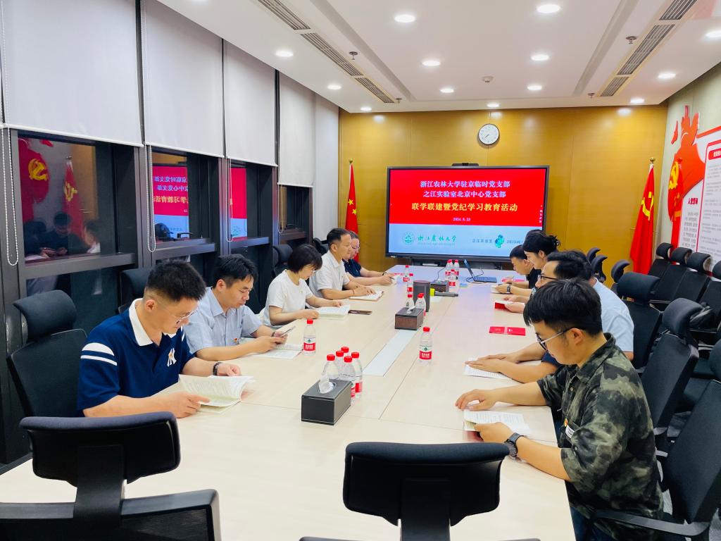 5月23日晚,beat365官网驻京临时党支部赴之江实验室北京中心,与之江实验室北京中心党支部开展联学联建暨党纪学习教育。驻京临时党支部11人通过参观学习、读书研讨方式认真学习贯彻党纪学习教育要求。之江实验室北京中心主任张春龙参加活动。