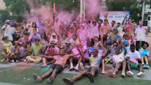 5月25日上午,国教学院在B区运动场举办了以“心心向荣,绽放年华”为主题的第六届国际生多彩文化节。来自赞比亚、越南、苏丹、摩洛哥、津巴布韦、科特迪瓦、赤道几内亚等30多个国家100多名留学生参加。