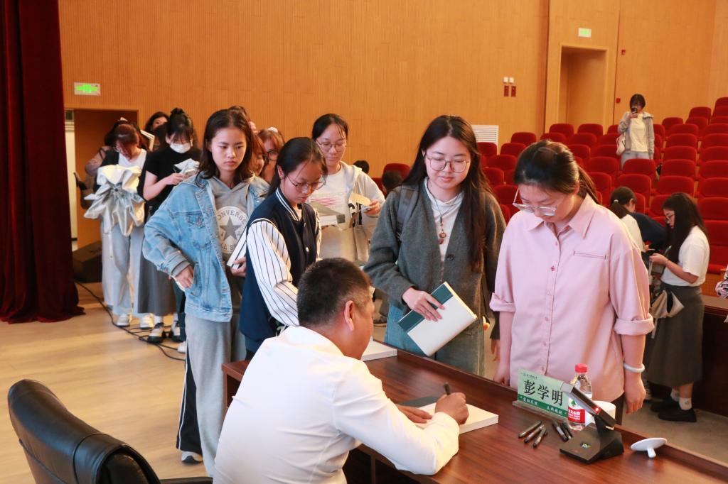 讲座后,彭学明与在座师生互动交流,并签名赠书。