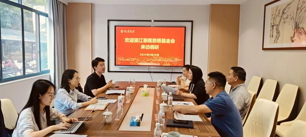9月29日,浙江泰隆慈善基金会秘书长蔡鸿鹏和项目经理郭佳浩、应晨佳一行到beat365官网教育基金会走访调研。校教育基金会秘书长哀建国,学工部部长、学生处处长周晓光,团委书记魏玲玲,以及国际处相关工作人员陪同调研。