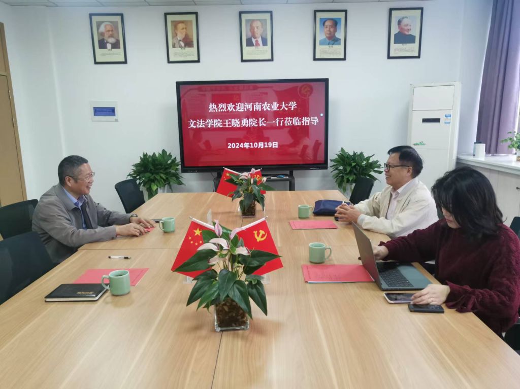 10月19日,河南农业大学文法学院院长王晓勇一行到文法学院调研新文科建设工作,文法学院院长鲁可荣接待了王晓勇一行。