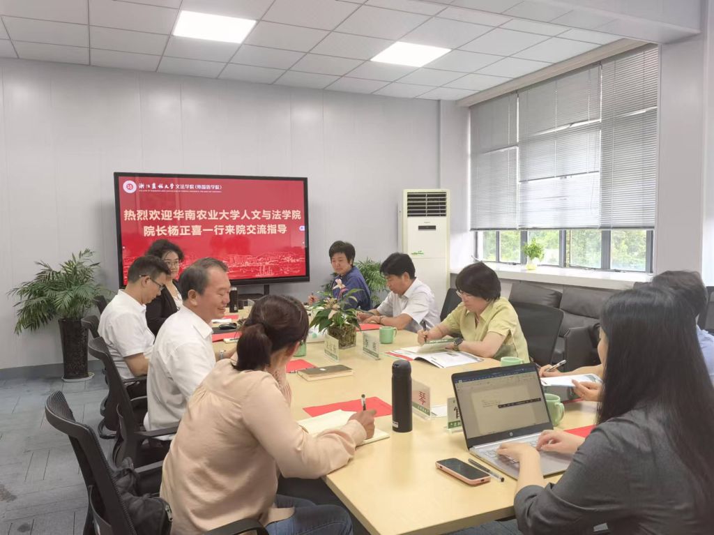 10月18日,华南农业大学人文与法学院院长杨正喜一行到文法学院调研,文法学院党委书记朱红东及学院学科相关代表参加交流。