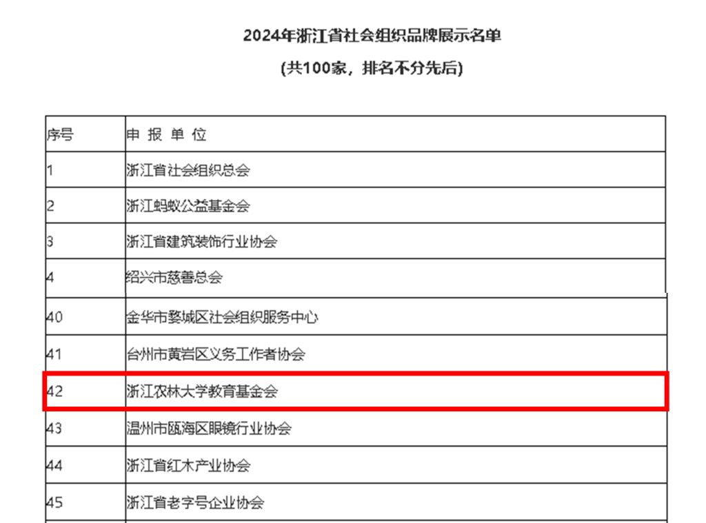 10月18日,浙江省民政厅公布了2024年全省社会组织品牌展示和领军人物评价结果,beat365官方网站教育基金会获评“浙江省品牌社会组织”称号,系全省唯一一家获此殊荣的高校教育基金会。
