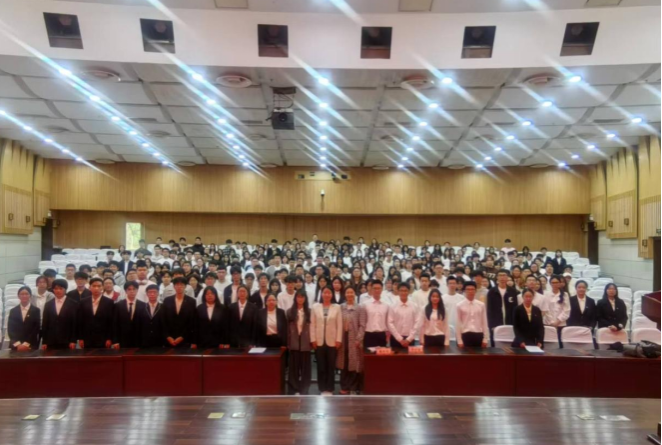 近日,2023-2024学年第二学期新发展团员入团仪式在东湖校区图书馆第一报告厅举行。校团委书记魏玲玲出席仪式。