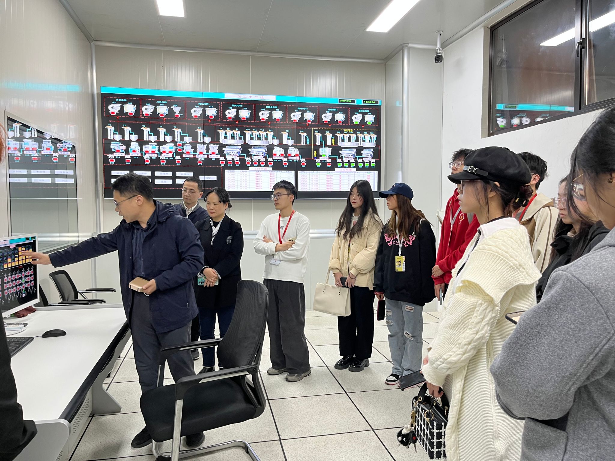 在供应商负责人的带领下,学生代表们先后参观了食用油和大米的仓库、生产车间、检测中心等关键生产区域。大家被数字化管理系统所吸引,通过大屏幕实时查看生产数据,了解数字化管理系统如何精准控制食材采购、加工、检测等全流程,以及智能机器人如何高效、准确地完成重物搬运、精确分拣等任务。从原料入库到产品出库,每一个环节都通过数字化手段进行精准控制,确保了食材来源的清晰可追溯。