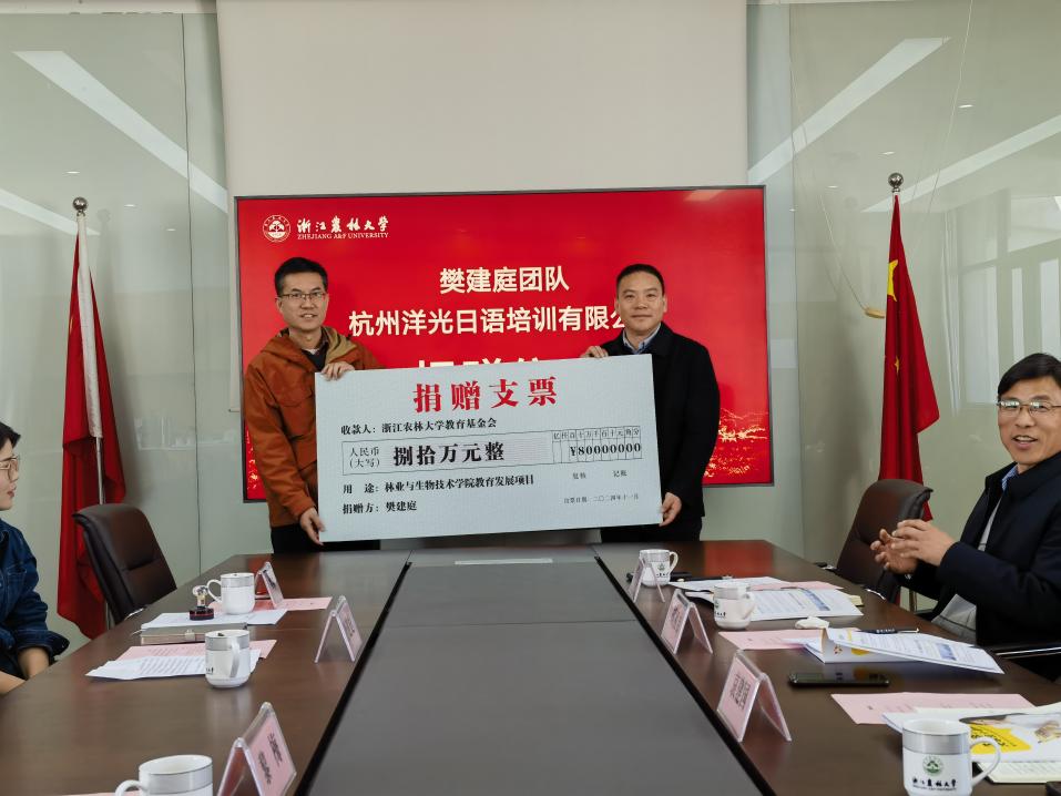仪式上,捐赠人、林生院教师樊建庭介绍了在松材线虫病防治方面开展的研究及取得的成效,并表示希望这次捐赠能够成为一种示范,鼓励更多的同事、校友乃至社会各界人士,以各种形式参与到学校的发展建设中来。杭州洋光日语培训有限公司校长何辉林介绍了公司基本情况。