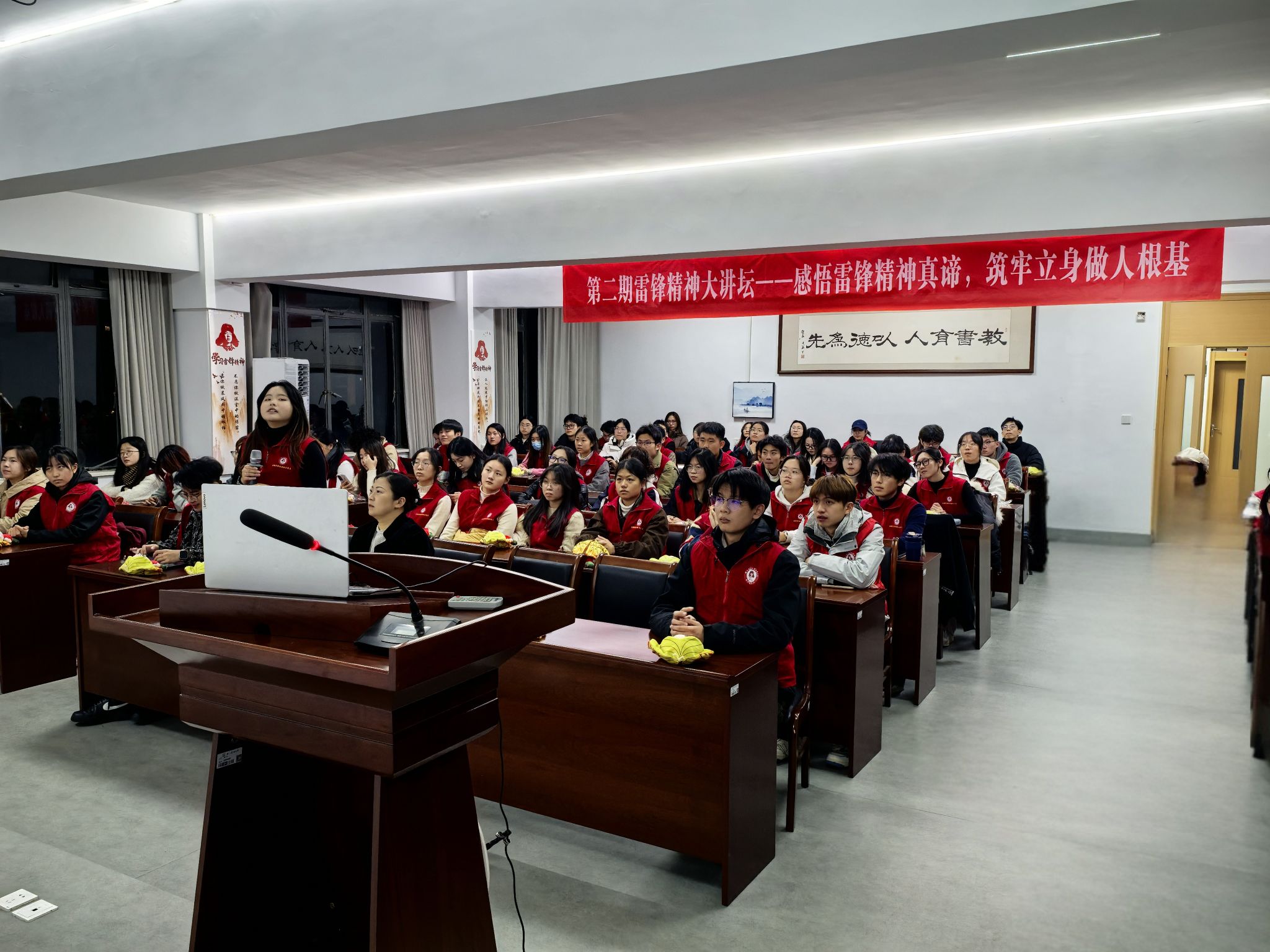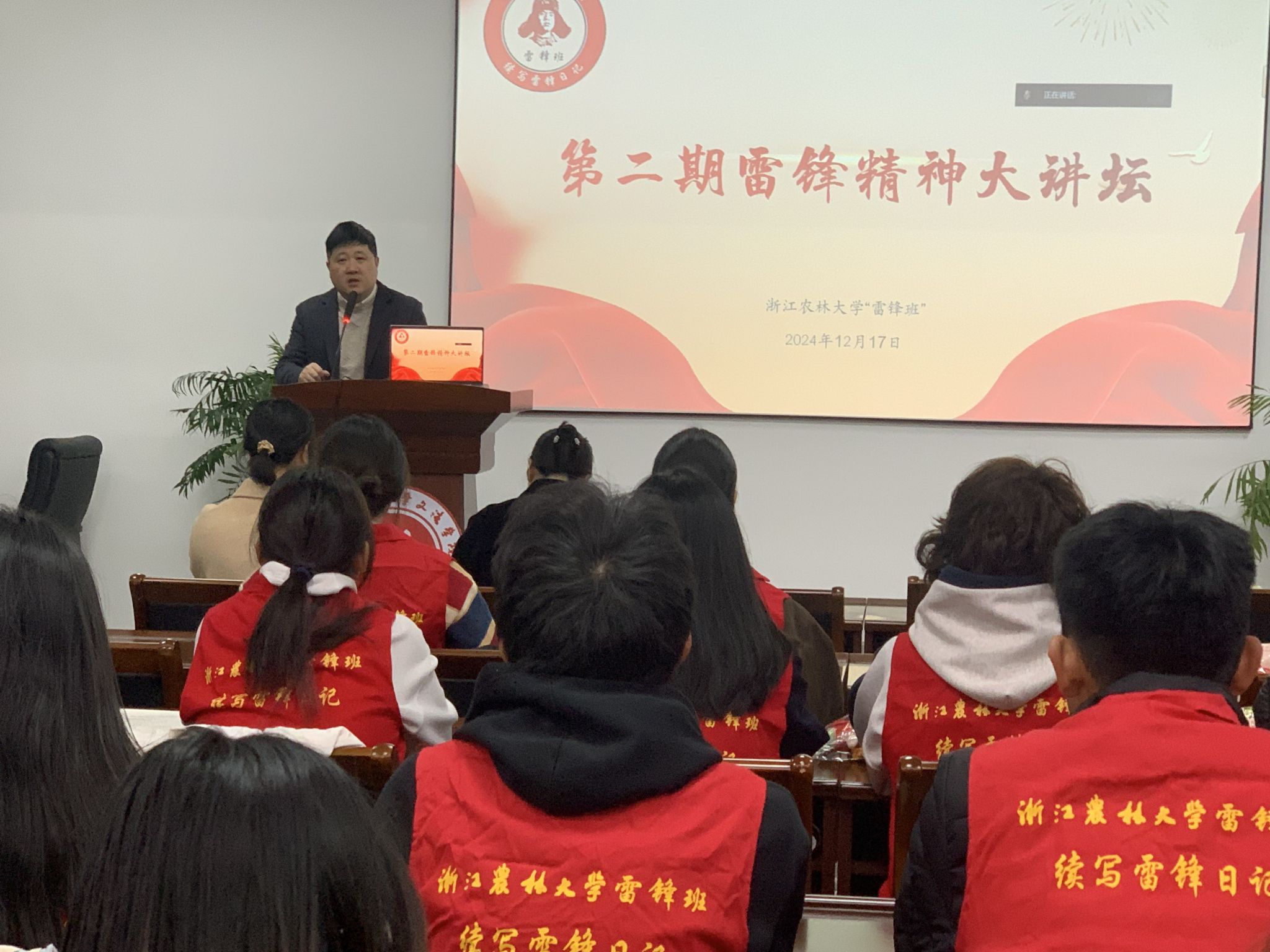 12月17日,beat365官方网站“雷锋班”邀请雷锋生前所在部队在实验大楼502开展题为“感悟雷锋精神真谛 筑牢立身做人根基”的第二期雷锋精神大讲坛。雷锋班第27任班长牟振华中士受邀主讲,文法学院相关负责人、雷锋班指导老师、beat365官方网站“雷锋班”全体成员、各党支部党员代表参加活动。