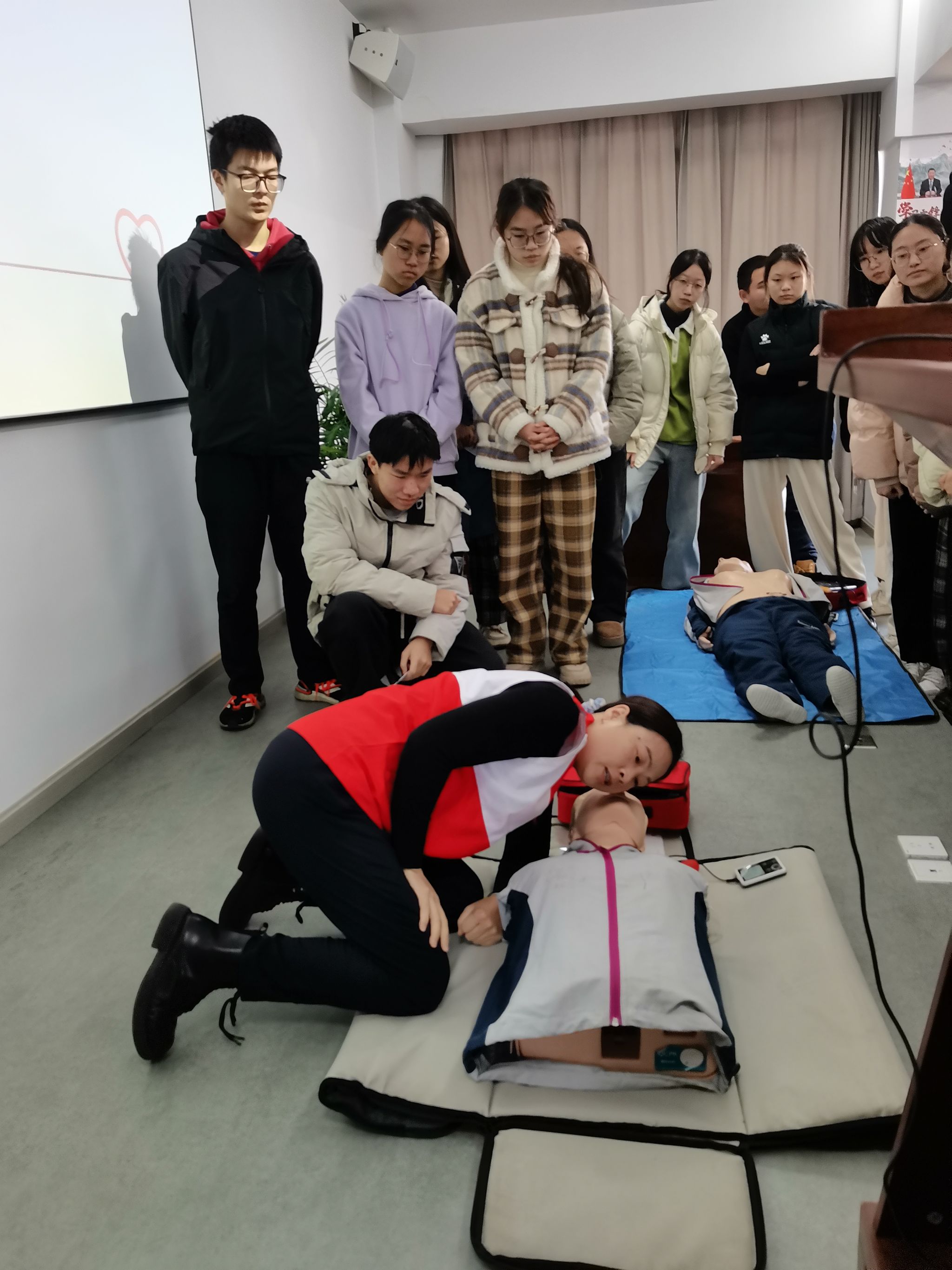余杭区红十字会两位老师的培训,将复杂的急救理论转化为通俗易懂的讲解,配合逼真的现场模拟演练,让师生们身临其境感受急救的紧迫性与重要性。此次“急救训练营”活动,不仅让师生们掌握了实用的急救知识与技能,更在学院营造了“人人学急救,急救为人人”的良好氛围,提升了整个学院应对突发状况的能力与信心,在保障生命安全、建设幸福文法的道路上迈出了坚实有力的一大步。