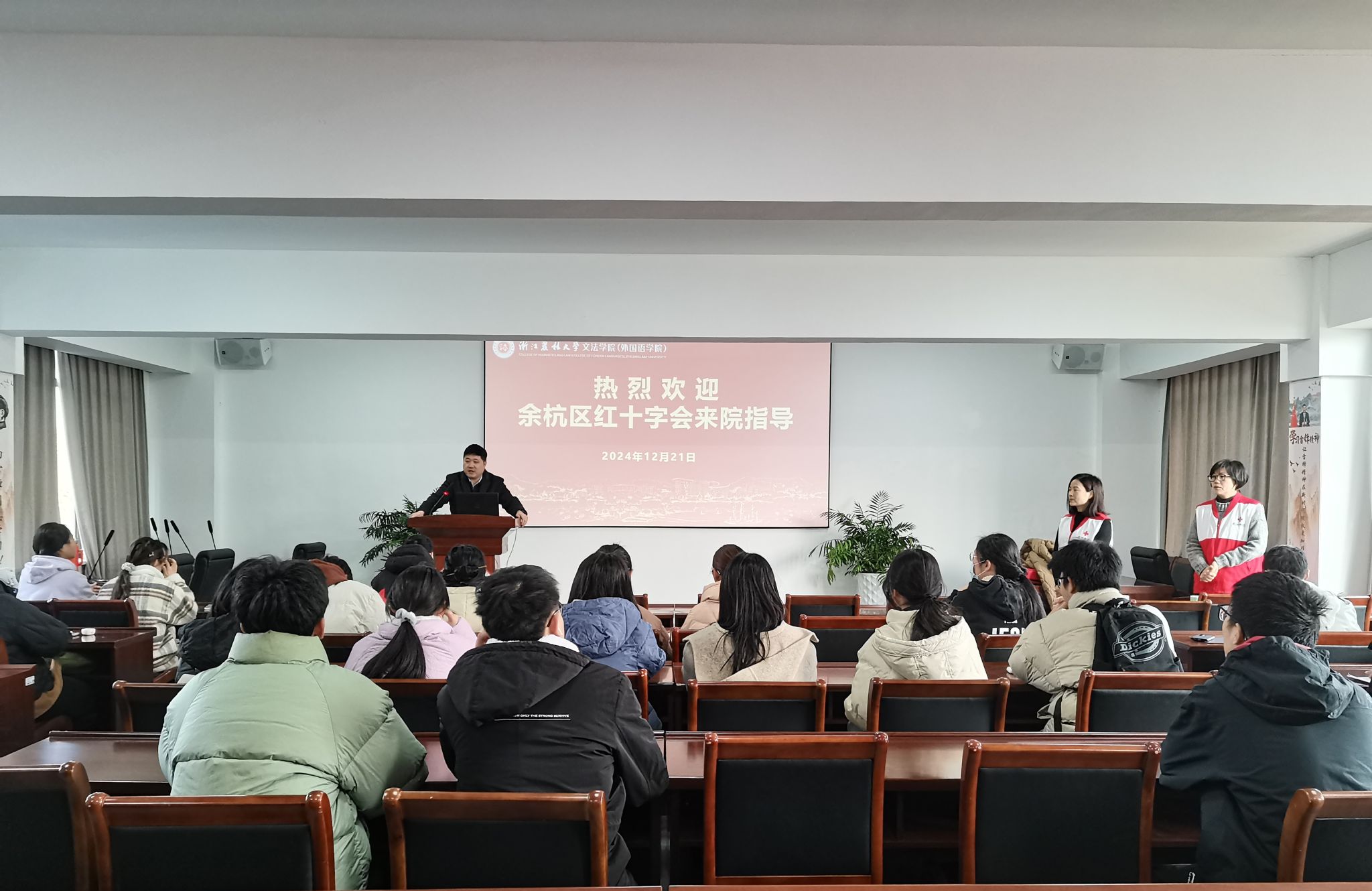 12月21日,文法学院工会、妇联联合杭州市余杭区红十字会、杭州师范大学开展“急救训练营”活动公益急救培训,文法学院34名师生参加并成功申获红十字救护员证。