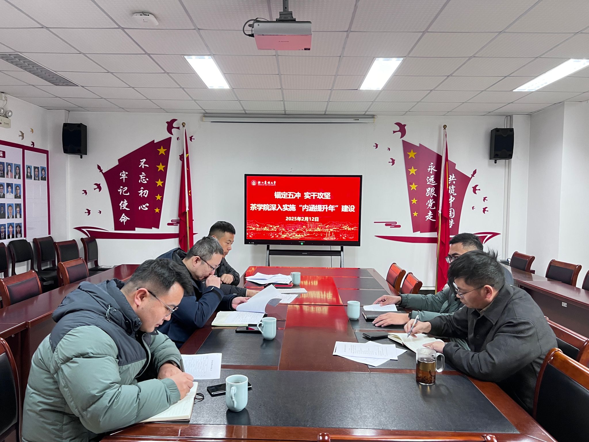 2月12日,茶学院召开“内涵提升年”建设专题推进会,围绕“内涵提升年”专项行动主题,系统部署改革发展任务。茶学院院长董杜斌主持会议。