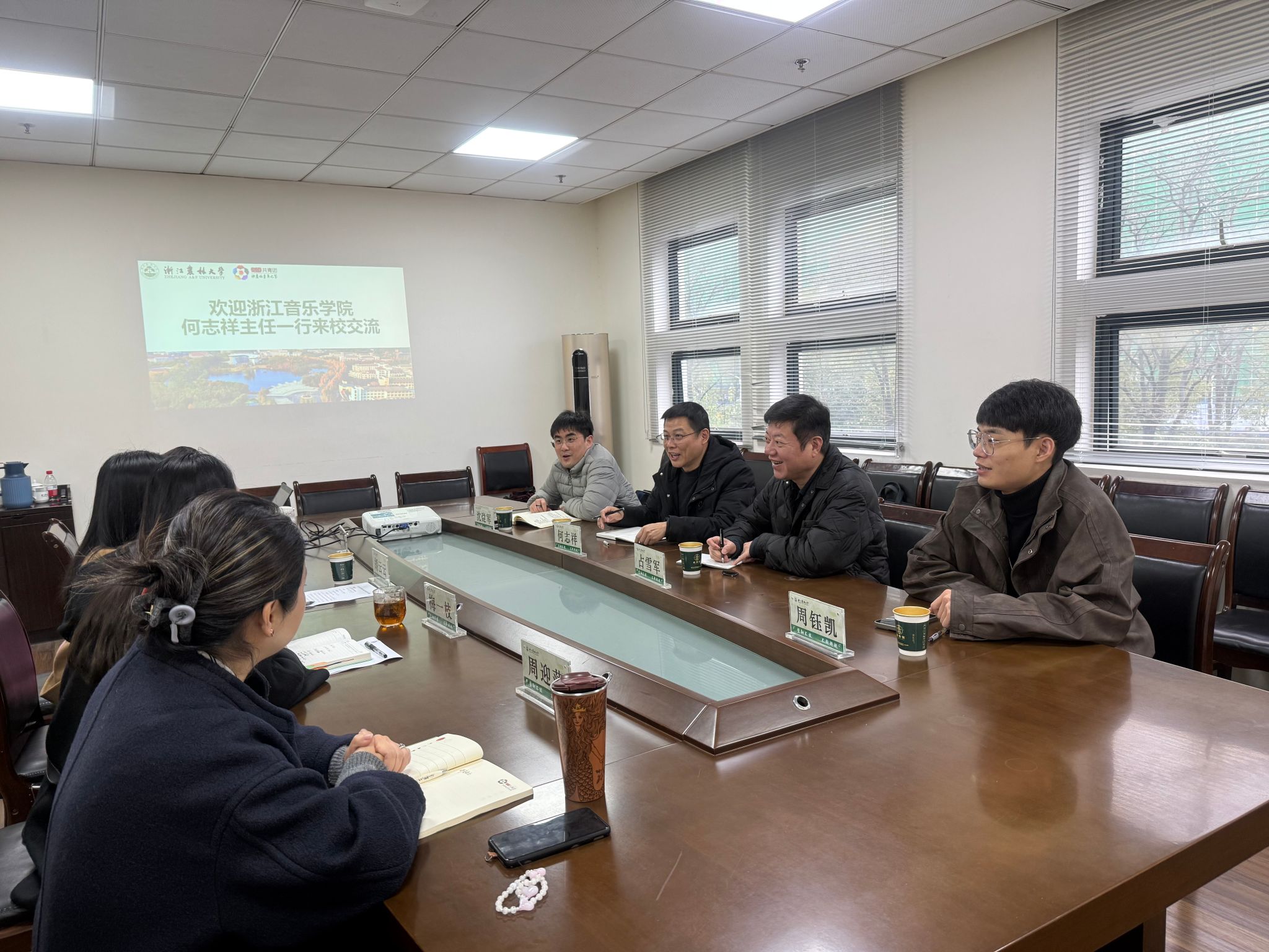 3月12日,浙江音乐学院教学与实践中心主任何志祥一行到校团委调研交流。校团委书记胡云云和艺术教育中心老师参加座谈。