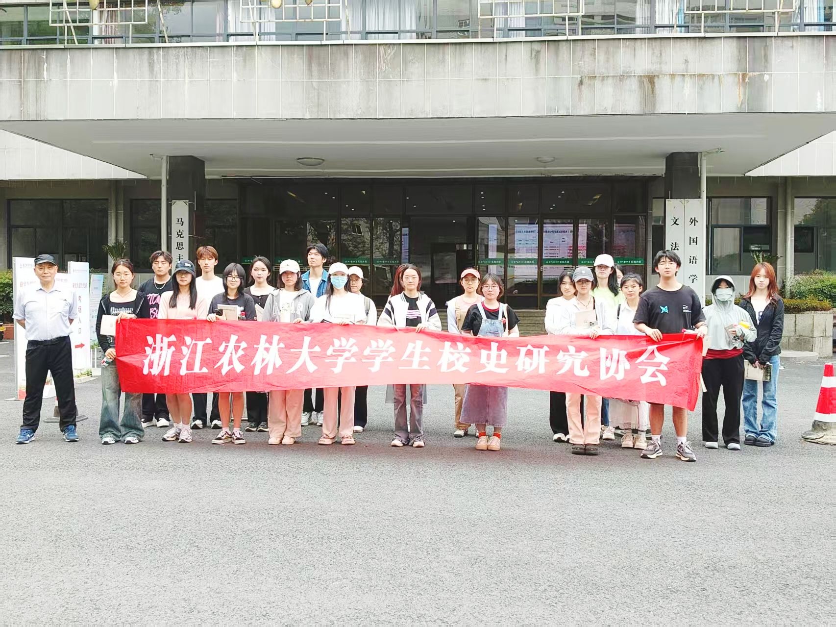 本次溯源活动分为校址寻访和校史馆沉浸式学习两部分。在胡建平老师带领下,师生共同前往建校初期旧址——葡萄园、东平殿遗址和衣锦校区,聆听胡建平老师讲述建校初期浙农林大人在简陋的条件下艰苦办学、师生合力共建东西大楼等故事。大家深刻体会了学校“坚韧不拔、不断超越”的精神和“肯干、实干、能干”的三干品质。在东湖校区校史馆,胡建平老师讲述了学校的发展历程,并对重要的校史照片、展陈实物进行了详细讲解。