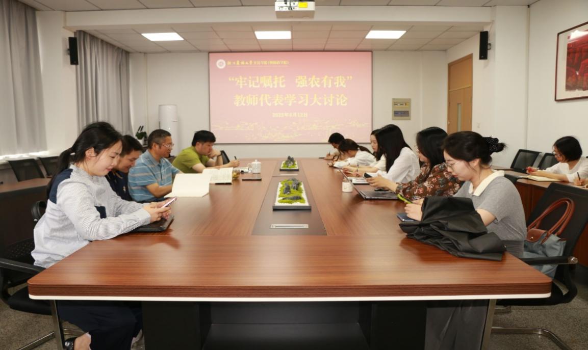 6月12日,文法学院在实验大楼612会议室组织“牢记嘱托 强农有我”教师代表学习大讨论。文法学院院长鲁可荣,党委副书记(主持工作)徐达及教师代表近30人参加讨论。讨论会由徐达主持。