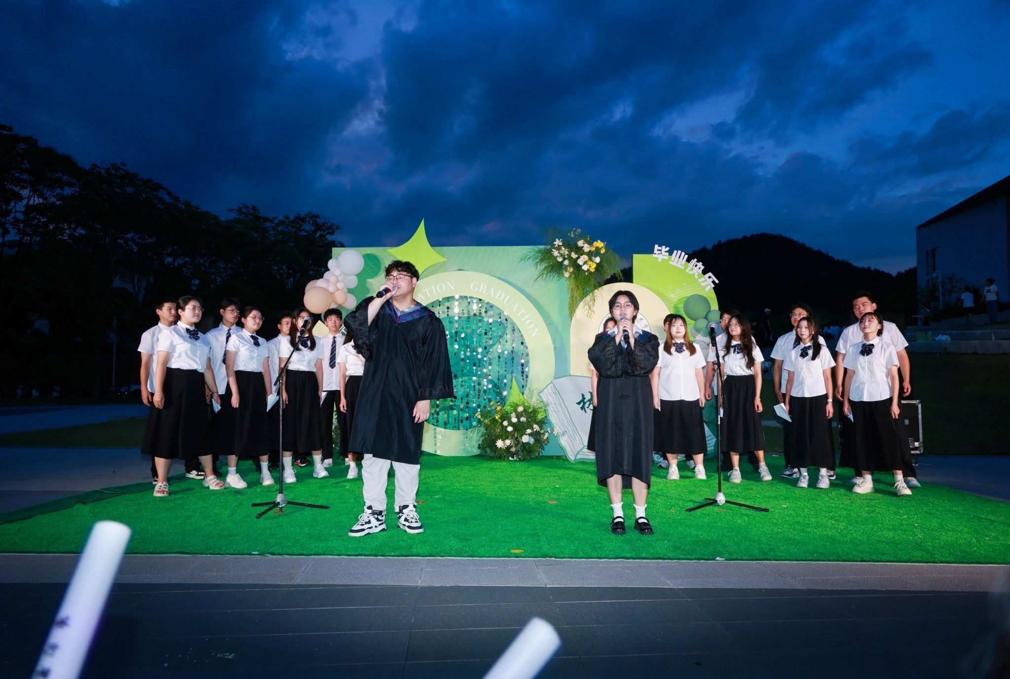 随后进行的毕业生歌会分为“林深·初见”“木秀·成林”“森生·万象”三个篇章,舞蹈、歌曲、朗诵等精彩纷呈的节目将全场气氛推向高潮,并在全场合唱《海阔天空》中落下帷幕。