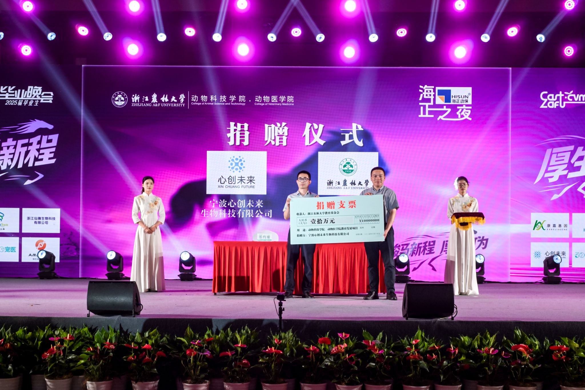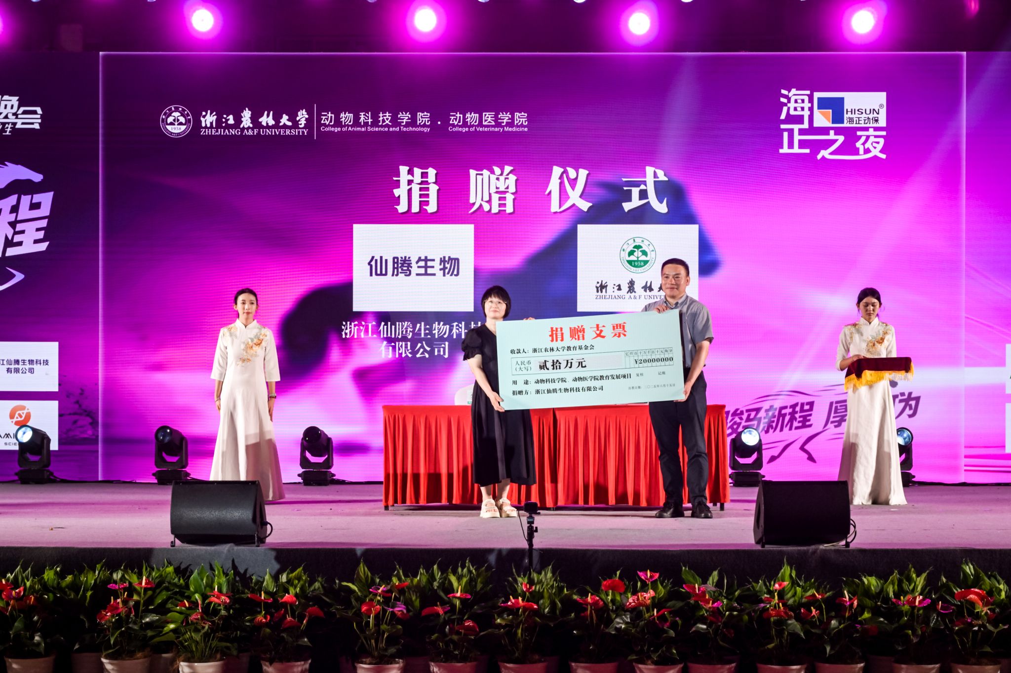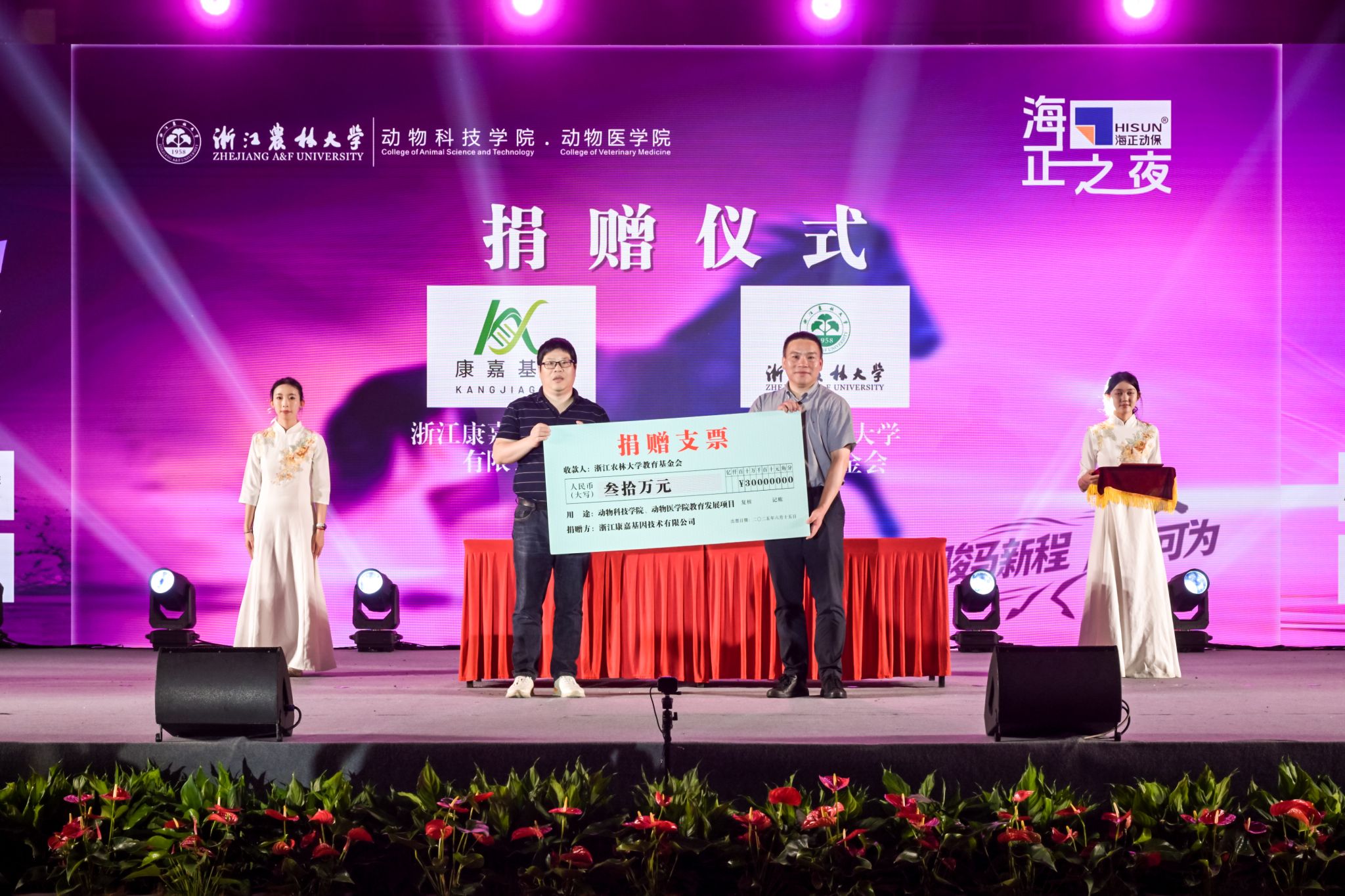 康嘉基因、洪晟生物、仙腾生物、心创未来分别向beat365官方网站教育基金会捐赠30万元、20万元、20万元、10万元,助力动科动医学院办学。哀建国代表学校教育基金会对爱心企业的热心捐赠表示衷心感谢,并为企业颁发了捐赠证书。