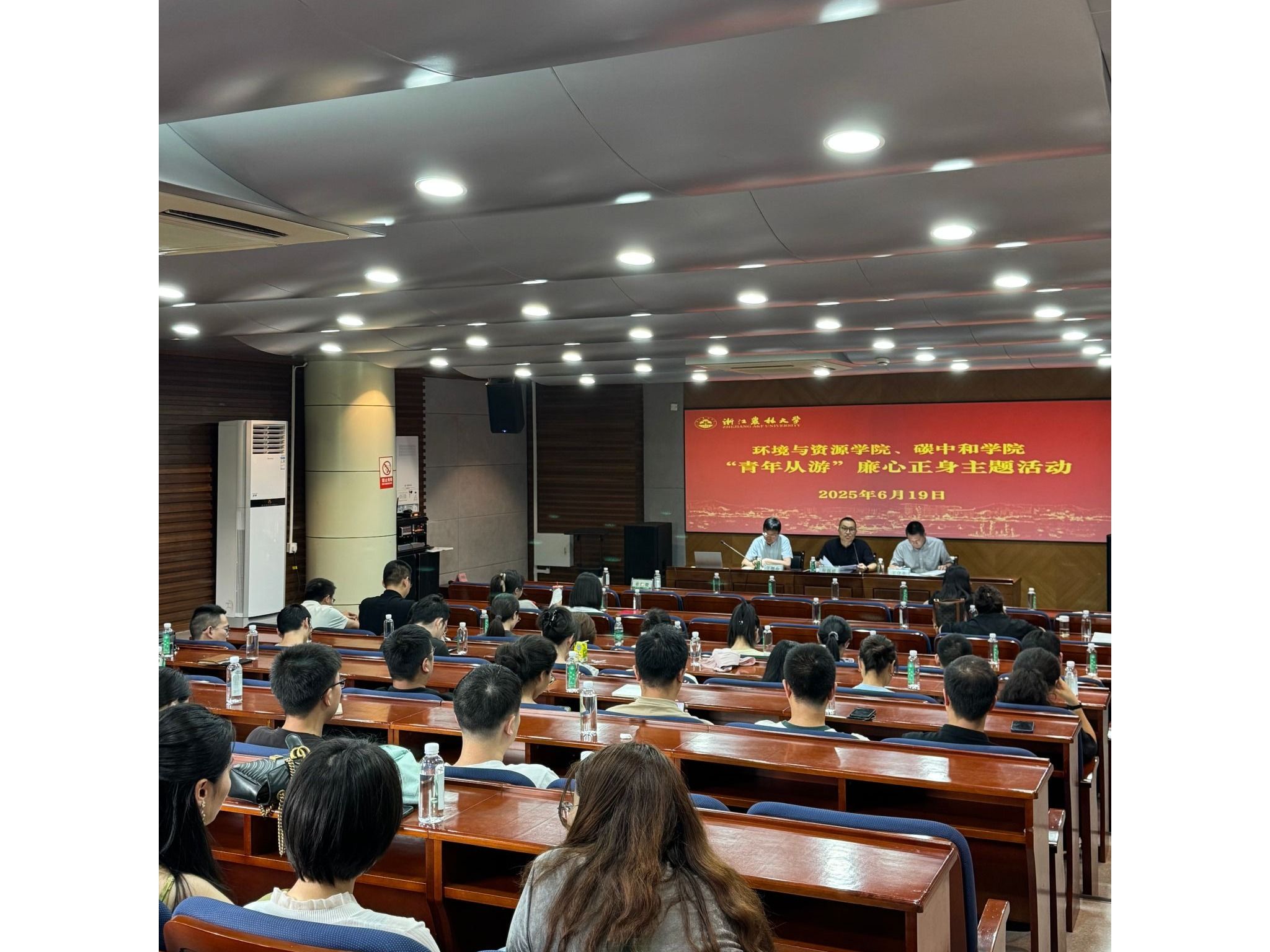 6月19日,环资院、碳中和学院在活动中心202举行“青年从游”廉心正身主题活动,学院领导班子成员、40周岁以下教职工参加活动。