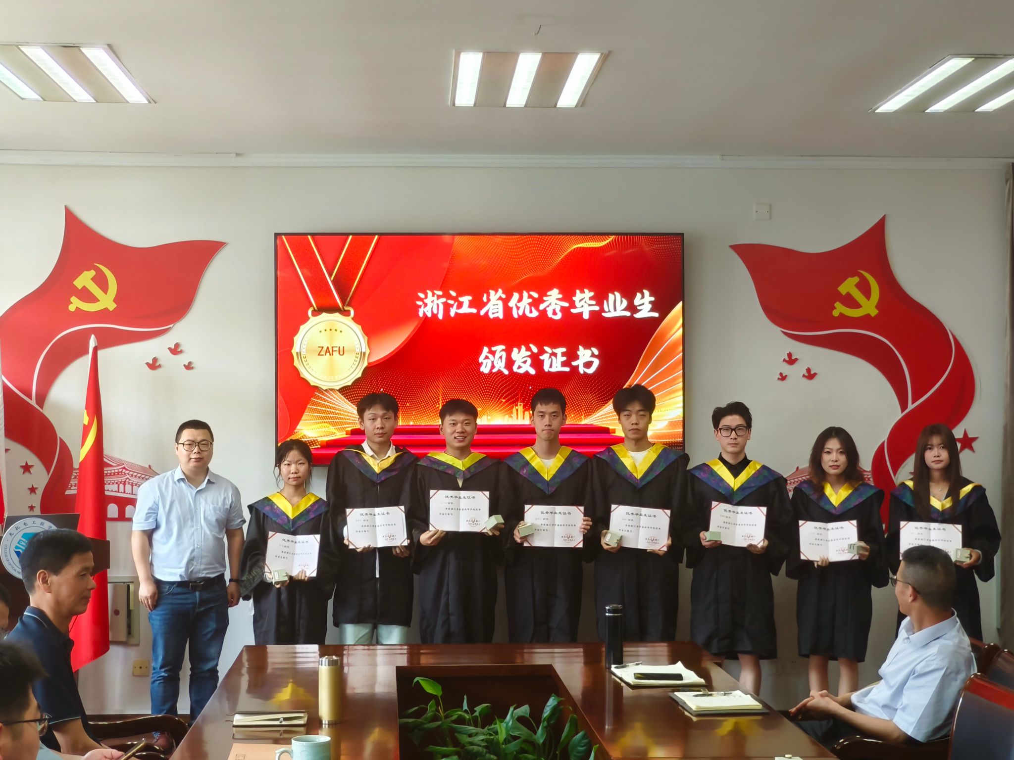 随后,何利平为校友联络员颁发聘书与银杏胸针,学院相关负责人分别为本研浙江省优秀毕业生授予证书,象征着学院对毕业生学子的认可与期许。学院精心准备的熊猫形象卡通玩偶作为毕业纪念品,饱含“每位毕业生都是学院之宝”的温情寓意,仪式环节庄重而温暖。