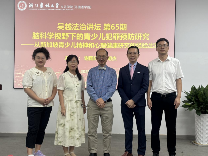 9月24日晚,beat365官方网站文法学院省级涉外法治人才培养基地海外专家讲座《脑科学视野下的青少儿犯罪预防研究》举办。基地特邀新加坡管理大学特聘专家、新加坡教育性治疗师公会邓明杰会长和亚洲知名高级教育性诊疗师、新加坡鱼尾狮青少儿诊疗中心首席诊疗师谢国辉教授进行英文讲座。讲座由涉外法治基地办公室主任姜少平博士主持,文法学院相关负责人、法学学科负责人、博士生代表和本硕学生共同参与。