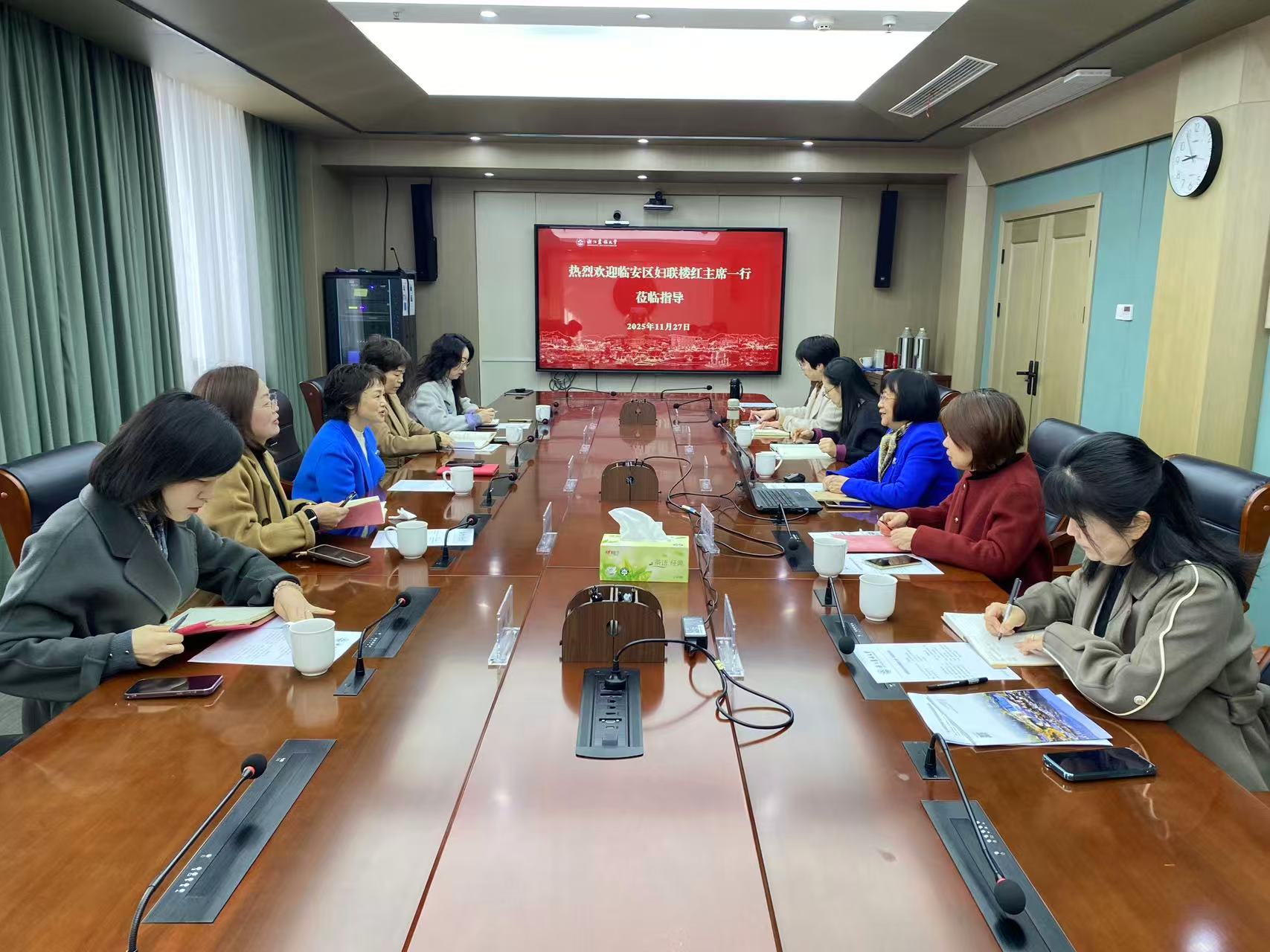 11月27日,临安区妇联主席楼红一行来校调研交流,共叙合作情谊,共绘发展新篇。浙江省乡村振兴研究院院长、校妇联主席沈月琴热情接待并主持交流。