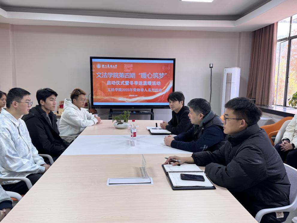12月11日下午,文法学院在实验大楼516会议室开展第四期“暖心筑梦”启动仪式暨冬季“送温暖”活动。学院相关负责人出席活动并讲话,相关辅导员及受助学生代表参加本次活动。