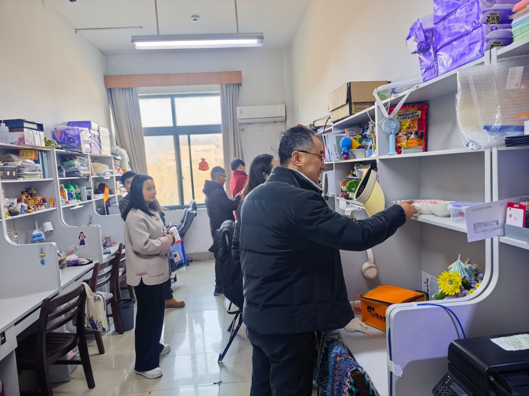 本次重点检查学生公寓和自习室,检查组一行先后走访了和A区、B区、C区、E区学生公寓和智能实验楼、学6学习室。每到一处,检查组都详细检查消防通道通畅、消防设施完好、有无私拉电线、违规使用大功率电器、违规充电和物品堆放等问题,对检查发现的问题和不足之处,能现场整改的要求现场整改,不能现场整改的要求限期整改,并做好跟踪检查和反馈工作。