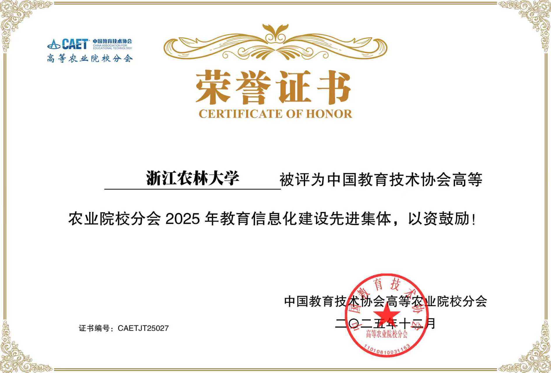 此次评选中,学校获评“2025年高等农业院校教育信息化建设先进集体”,这是对其信息化建设水平、服务保障能力及教育教学数字化转型成效的充分肯定。近年来,学校持续自主创新,不断优化智慧校园平台,为教学、科研与管理提供坚实支撑。