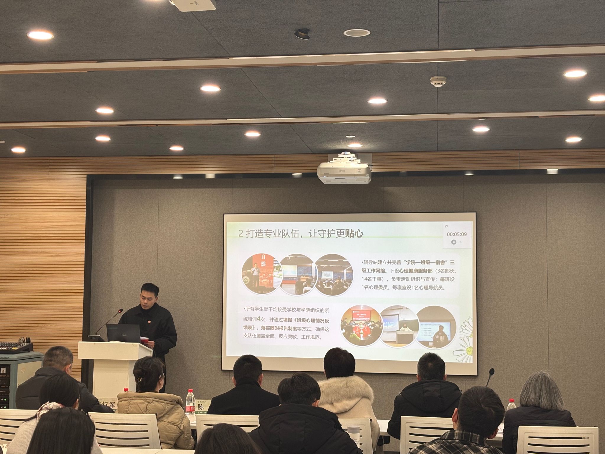 1月22日,2025年度学院心理辅导站考核会在活动中心举行。学工部部长周晓光出席,心理健康教育中心教师、各学院心理辅导站站长参会。