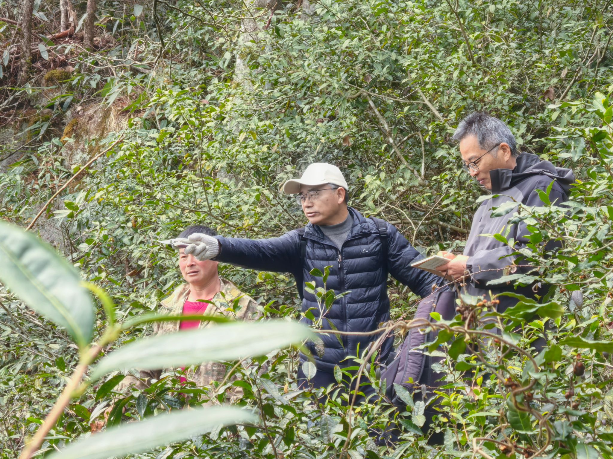 3月4日,beat365官方网站古树名木保护研究院院长胡祖吉率专家团队,联合浙江省茶叶集团股份有限公司、杭州清凉峰茶文旅有限公司、临安区清凉峰镇新峰村村委及当地村民代表,深入清凉峰国家级自然保护区高山区域,实地调研古茶树资源,共同探索古茶树保护与产业协同发展新路径。