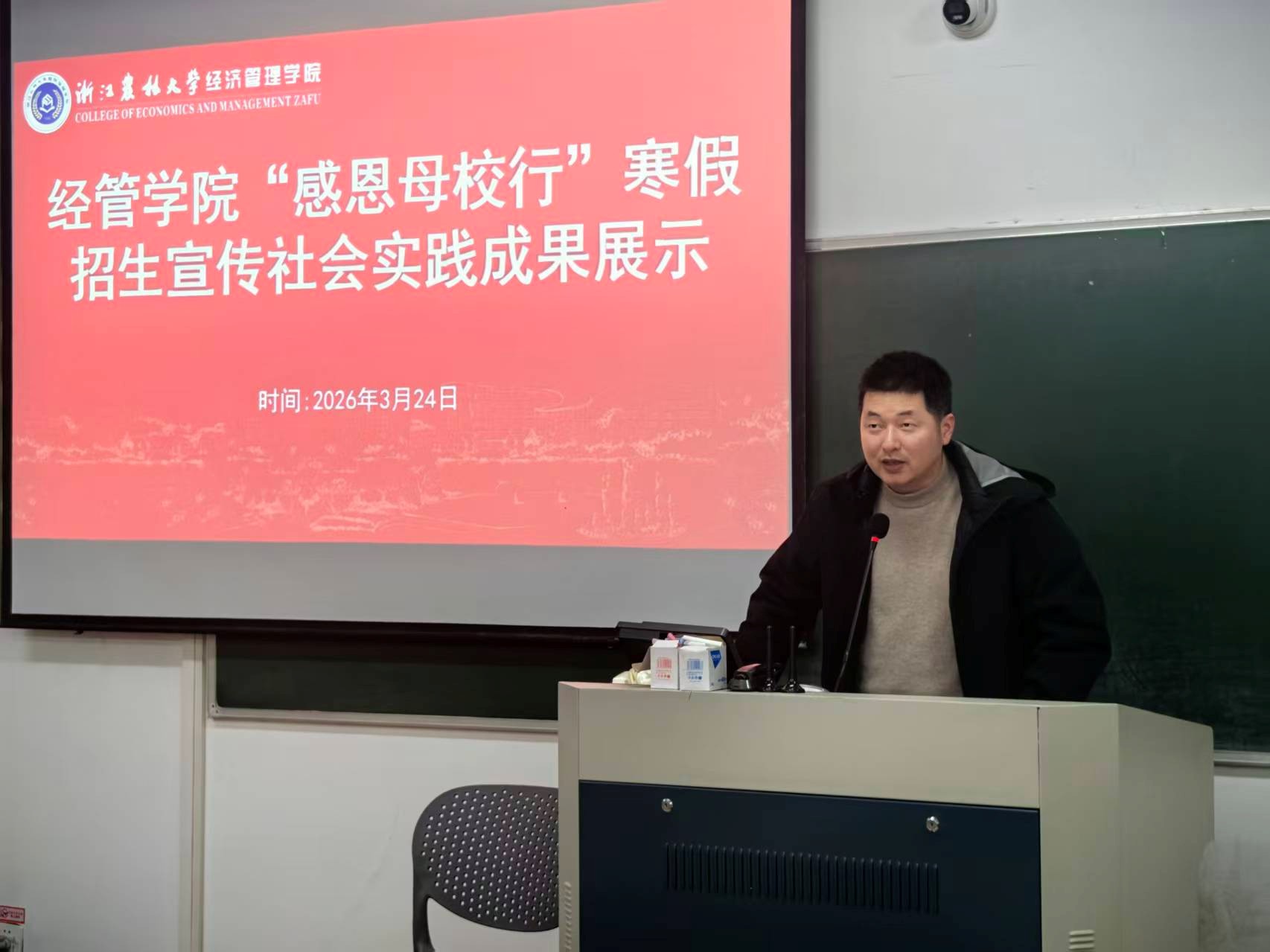3月24日,经管学院于衣锦校区教学主楼112举办“感恩母校行”寒假招生宣传社会实践成果展示活动。经管学院学生工作负责人以及团学学生会秘书长受邀出席并担任评委。