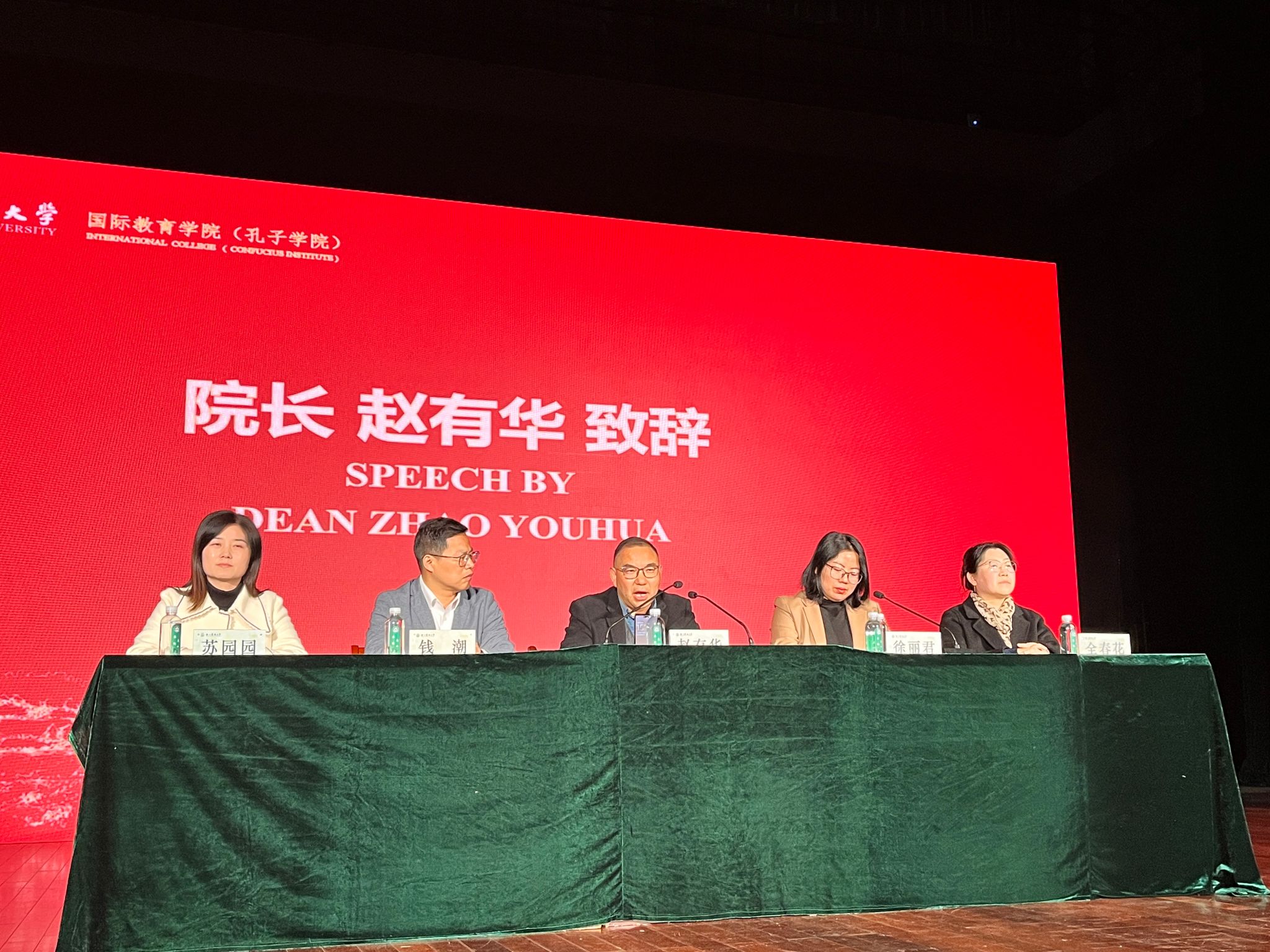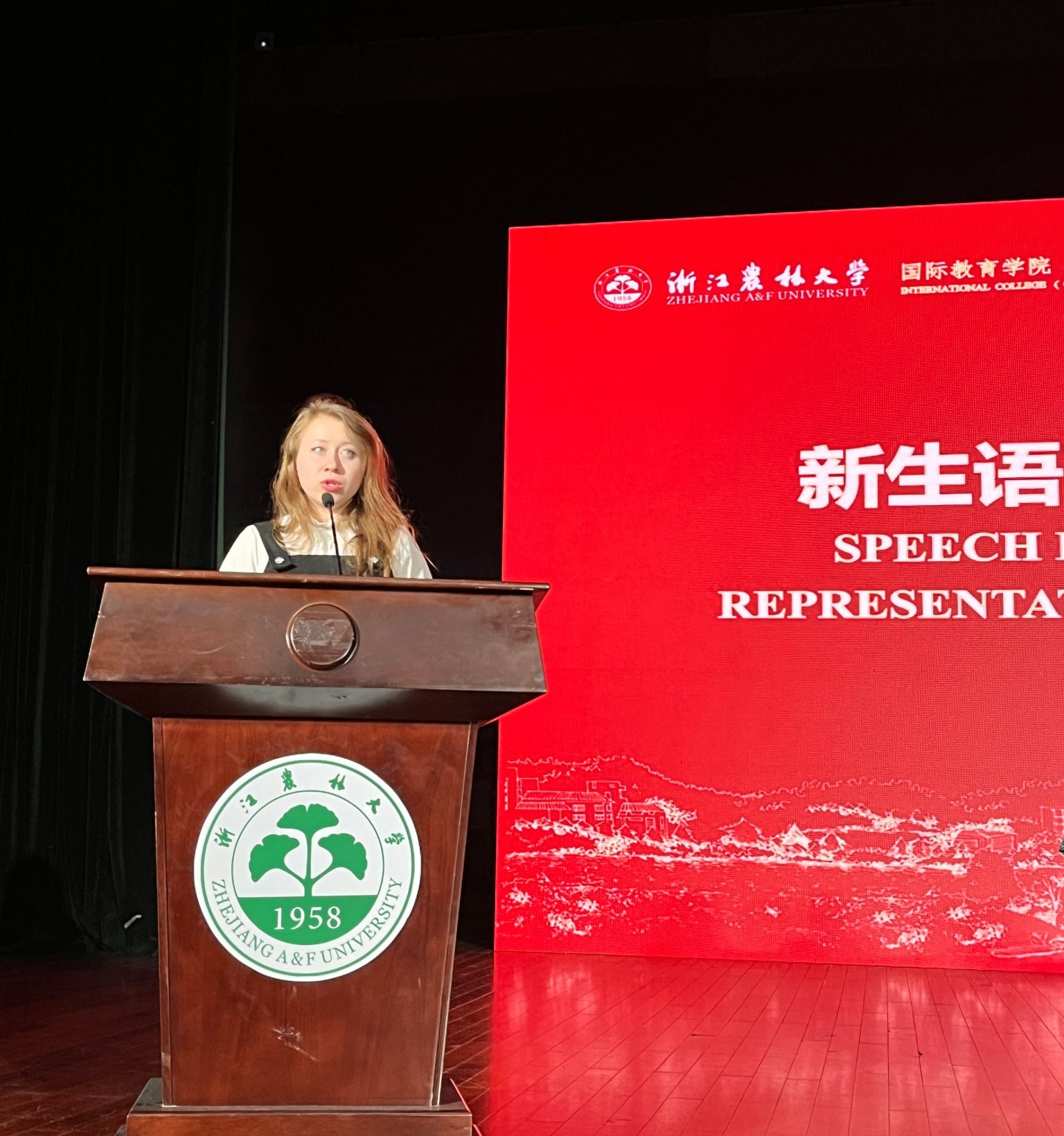 赵有华代表学院对来自全球30多个国家的166名新生表示热烈欢迎,他寄语同学们全方位领略中国文化魅力,深刻感悟中国智慧真谛,透彻理解中国方案内涵,用心讲好中国故事,架起中外文化交流的桥梁。同时,他向新生提出三点希望:一要志存高远,立鸿鹄之志以明方向,绘人生蓝图而启新程;二要修身守正,强身心之健以固根本,遵校国之规而守底线;三要笃学力行,融课堂内外以求真知,践知行合一而悟专业。他勉励新生在浙农林的美丽校园中激扬青春,践行“求真 敬业”校训,弘扬“坚韧不拔、不断超越”的精神,勇攀高峰,成就精彩人生。