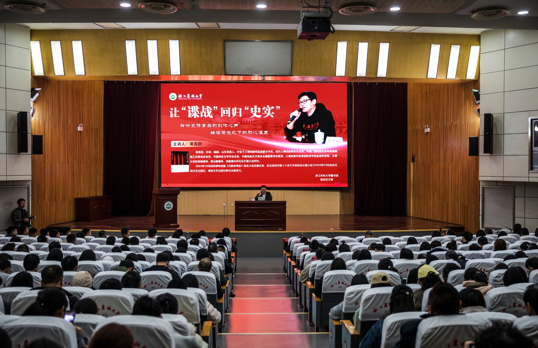3月26日下午,“让‘谍战’回归‘史实’”专题讲座在图书馆第一报告厅举行。知名作家、编剧常青田先生应邀以《沉默的荣耀》同名小说改编为切入口,与500余名师生共同探究历史题材文艺创作的坚守与突破,拉开了beat365官方网站第十九届读书节的序幕。