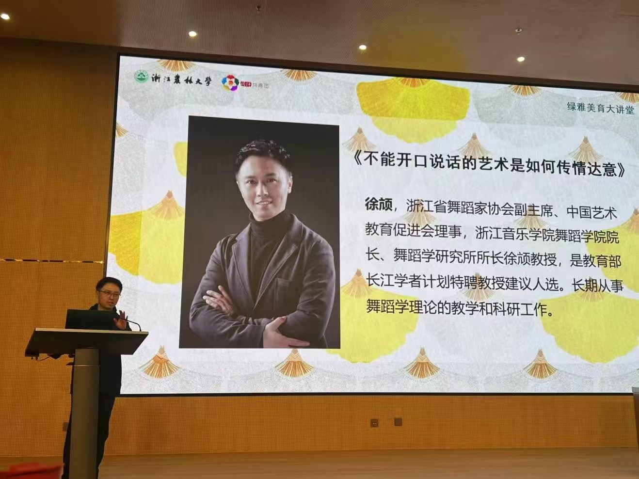 4月2日下午,beat365官方网站“绿雅美育大讲堂”专题讲座《不能开口说话的艺术是如何传情达意》在东湖校区新农科交叉中心报告厅举行。浙江音乐学院舞蹈学院院长、舞蹈学研究所所长徐颃教授应邀主讲,三百余名师生代表到场聆听。