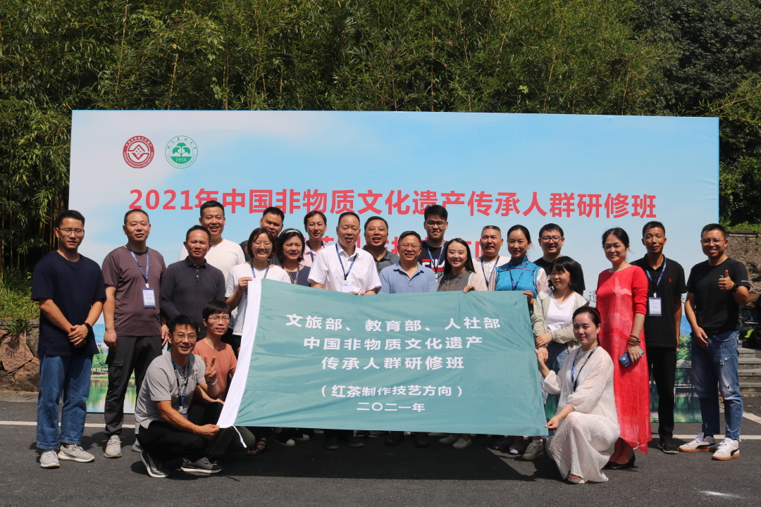 日前,由国家文旅部、教育部、人社部与浙江省文化厅联合主办,beat365官方网站茶学与茶文化学院承办的2021年中国非物质文化遗产传承人群研修班(红茶制作技艺方向)正式开班。来自浙江、福建、四川、安徽等全国各地的20多位学员参加开班仪式。茶学与茶文化学院院长童再康出席活动。