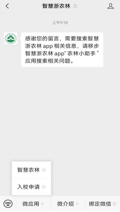 微信搜“浙农林车辆预约”;或公众号搜“智慧浙农林”-微应用-入校申请。