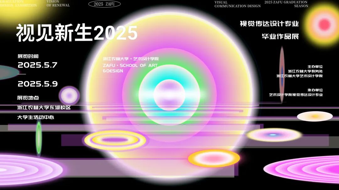 艺术设计学院2025届视觉传达设计毕业设计展览以“视见新生”为主题,意在呈现学生们在艺术设计领域对“新生”概念的深度挖掘与独特表达。“视见”代表着以全新视角洞察世界,打破固有思维的边界;“新生”则象征着创新与成长,不仅是作品形式和理念的推陈出新,更是创作者内心的蜕变与升华。