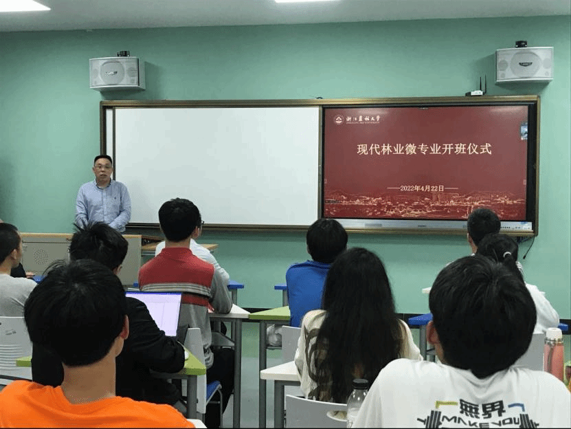 4月22日,“现代林业”微专业开班仪式以线上线下相结合的方式在临安与丽水同步举行,教务处、林生院相关负责人、微专业相关课程负责人、微专业首届47名同学参加开班仪式,其中丽水职业技术学院的同学以线上的形式参加。