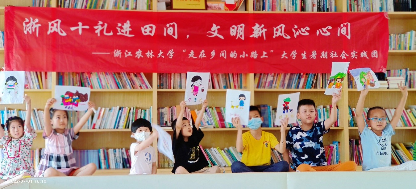 为促进家庭家教家风建设,提高下一代的文明素养和文明程度,实践团开展了“萌娃绘十礼”主题活动,社区里的孩子以“浙风十礼”为主题,通过绘画的形式,涂鸦出一幅幅有趣的“十礼”彩笔画。